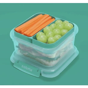 Wyjmowane przegródki do oddzielnego przechowywania posiłków i przekąsek, które pozostają świeże do momentu spożycia.